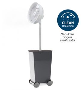 - interruttore OFF/VENTILAZIONE/VENTILAZIONE+NEBULIZZAZIONE ! peso bilanciato, ruote e maniglia di movimentazione
